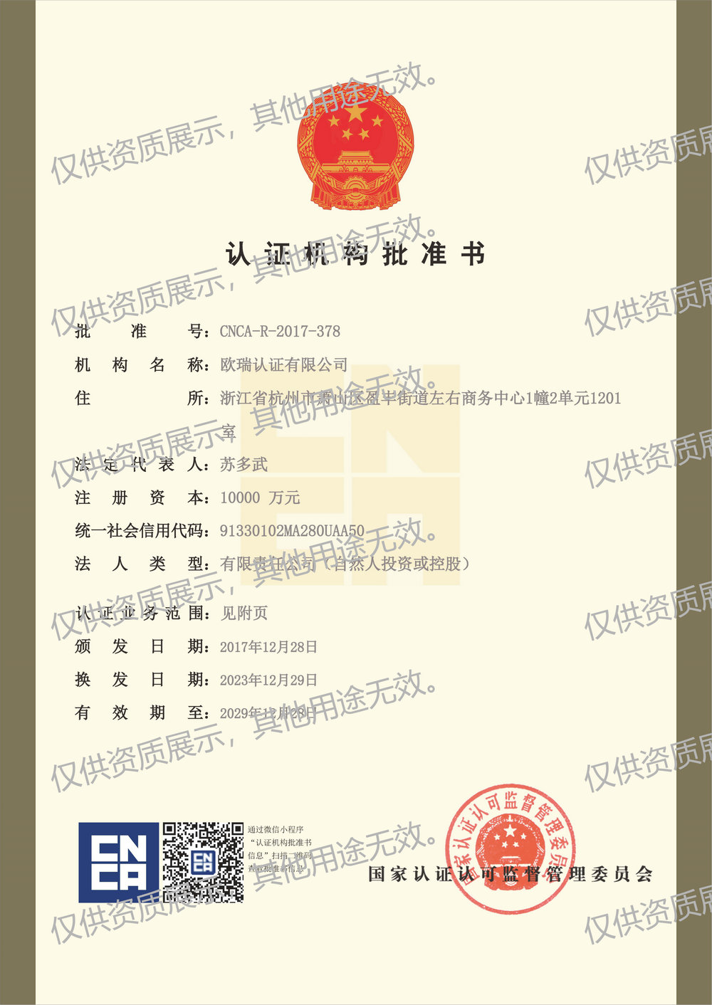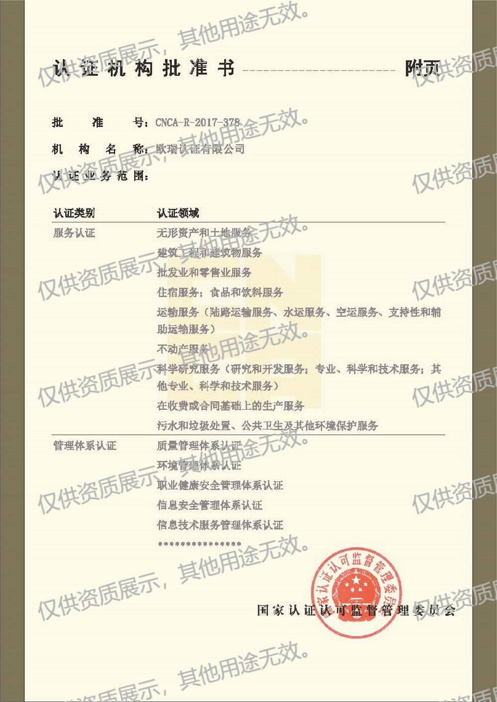 首页 > 关于我们 > 认证机构批准书